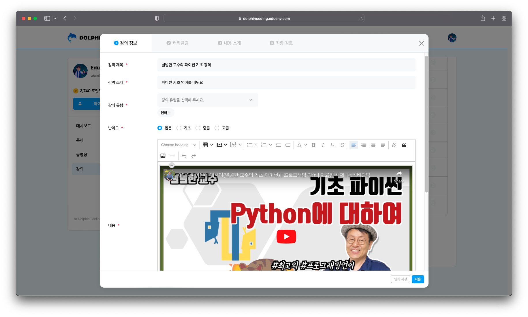 문제 만들기도, 동영상 만들기도 클리어하셨다면 이제 나만의 강의를 만들어 볼 차례입니다.