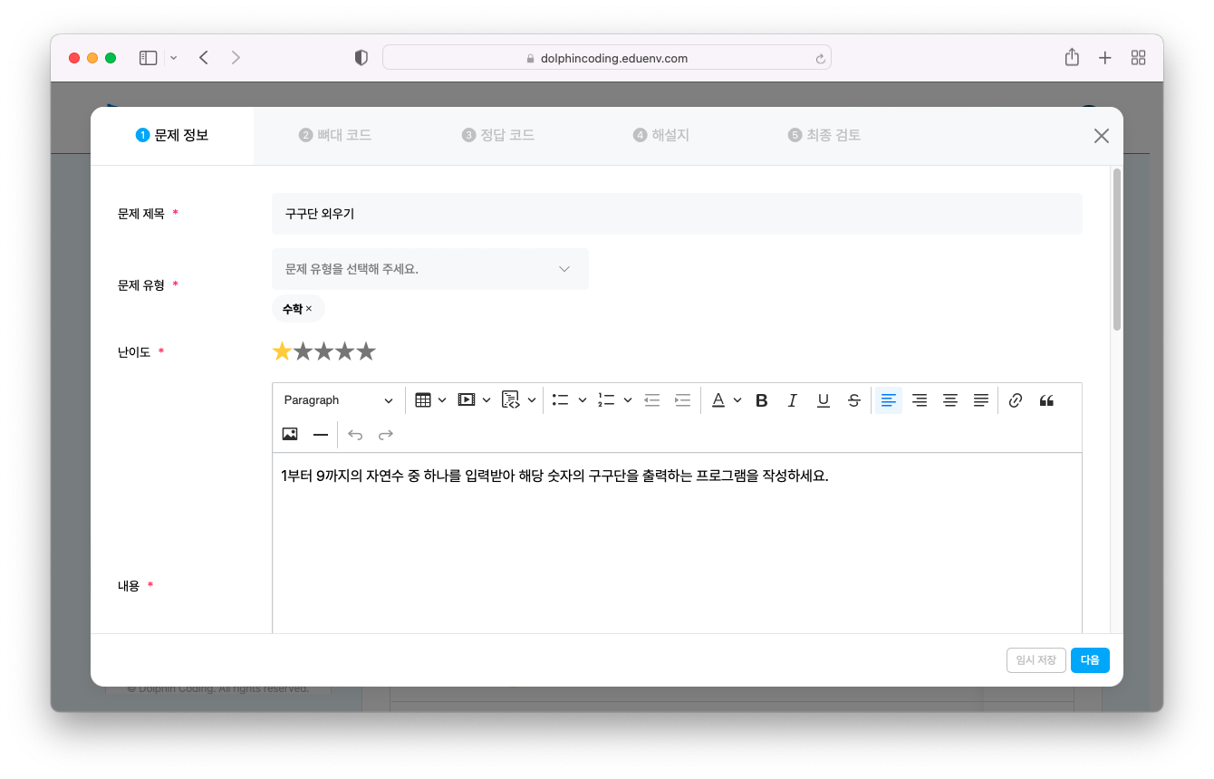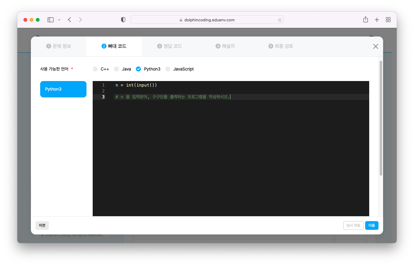 Step 1) 문제 정보 입력하기